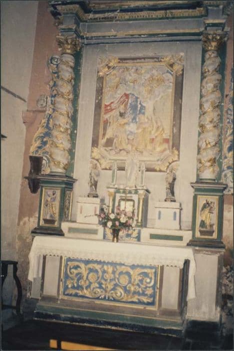Ensemble composé par des éléments de décor d'architecture structurant le retable. Panneau cantonné de deux colonnes torses ornées de pampres de vigne, surmontées de chapiteaux corinthiens soutenant un entablement à ressauts. Grandes volutes feuillagées latérales. Piédestal des colonnes à panneaux figurés. Autel composé d'un devant d'autel à rinceaux feuillagés. Panneau central historié : saint François de Sales adolescent agenouillé aux pieds de la Vierge recevant sa vocation. Panneaux figurés : saint Marc et saint Luc.