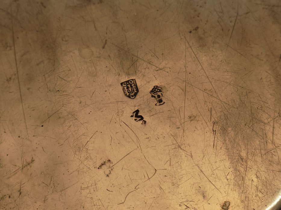 Poinçon de communauté : B couronné (au-dessous du creux). Lettre-date : X avec trace de couronne (au-dessous du creux). Poinçon de maître (au-dessous du creux) : de Charles Oger de Chenevrière, de Besançon.