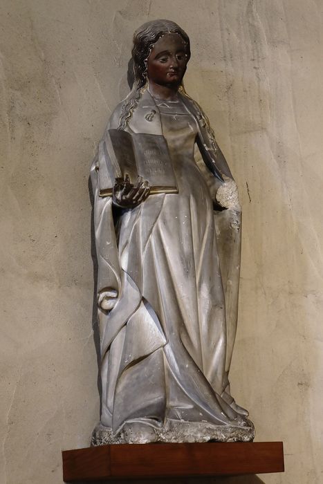Même sculpteur ou atelier que la statue de sainte Barbe (PM25000187). Les 2 statues proviennent de l'ancien retable de la chapelle Saint-Denis détruit à la fin du XIX e siècle.