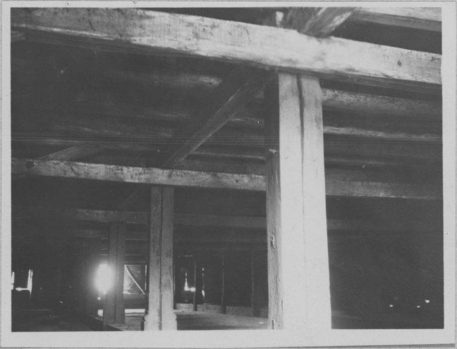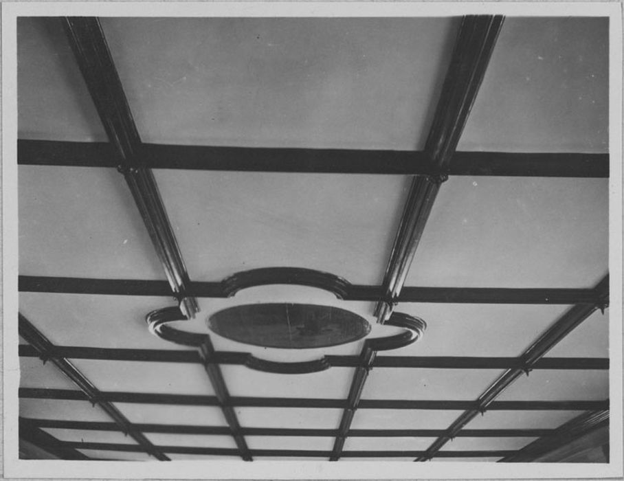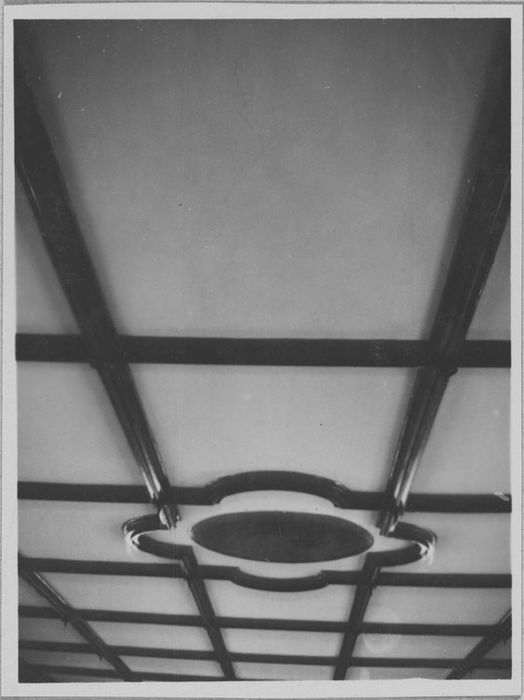 L'ensemble est constitué des caissons du plafond, formés par l'entrecroisement de longues poutres moulurées, et du médaillon central qui renferme une toile représentant le Bon Pasteur.
