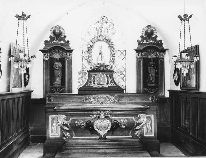 L'ensemble est constitué de l'autel, son couronnement, et deux niches.
