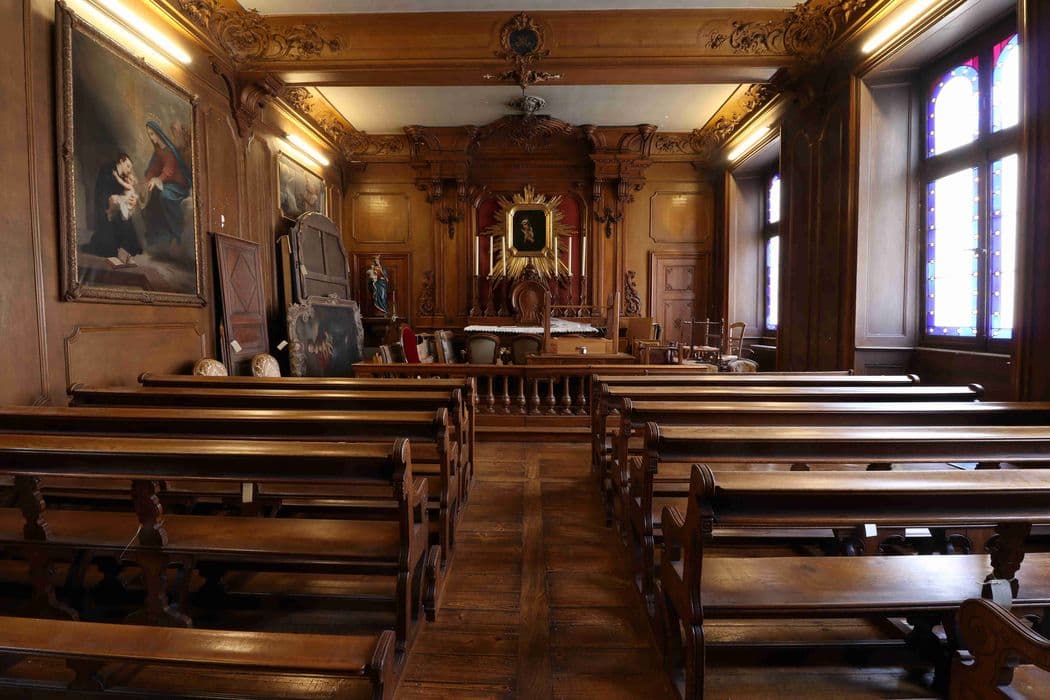 POP | Plateforme ouverte du patrimoinelambris de demi-revêtement, armoires, chandeliers d'autel (garniture d'autel), bancs, agenouilloirs, prie-Dieu, confessionnal, statue : saint Joseph et l'Enfant Jésus