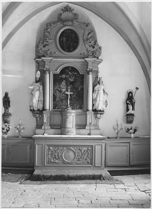 POP | Plateforme ouverte du patrimoineautel, retable, 2 statues : saint Georges, sainte catherine, 2 tableaux : Trinité, saint Georges (maître-autel)