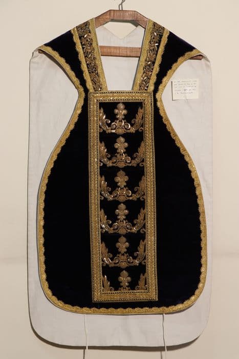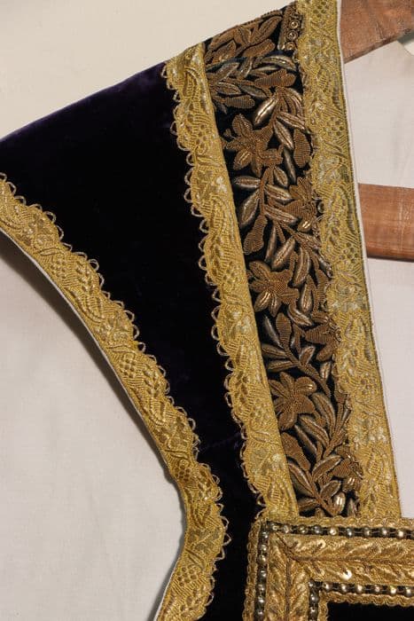 POP | Plateforme ouverte du patrimoineornement violet dit à tort "du cardinal de Rohan" : chasuble, étole, manipule, voile de calice, bourse liturgique