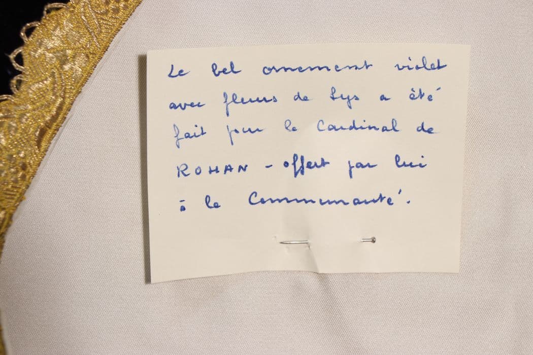 ornement violet dit à tort "du cardinal de Rohan" : chasuble, étole, manipule, voile de calice, bourse liturgique