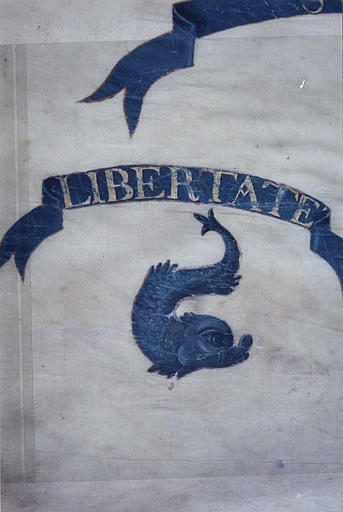 Modèle bien particulier car en 1789 et 1790 la plupart des drapeaux sont ornés de la croix blanche.