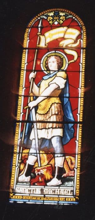 trois verrières du choeur : Saint Michel, Saint Christophe et Sainte Jeanne d'Arc