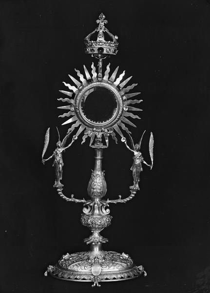 L'allure générale de cet ostensoir évoque le type Renaissance, mais plusieurs détails dans la décoration dénotent le 17e siècle.