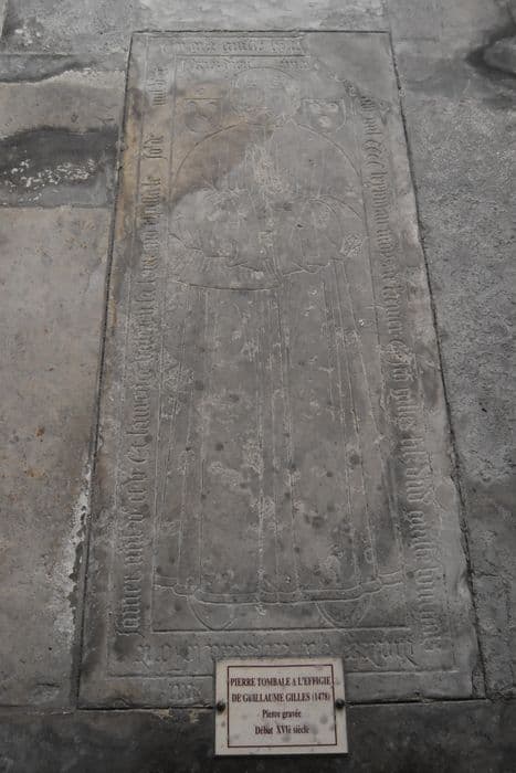 pierre tombale de Guillaume Gilles, de Jean Gilles, son fils, et de Laurence Valereu, sa femme