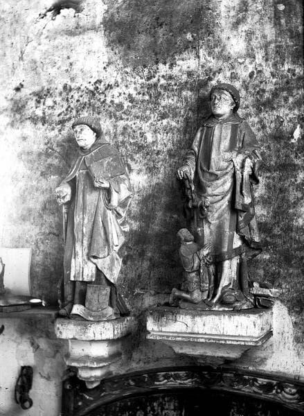 groupe sculpté : Saint Léonard et un donateur