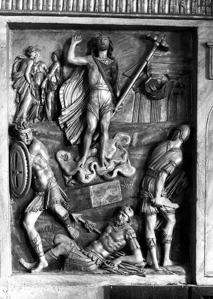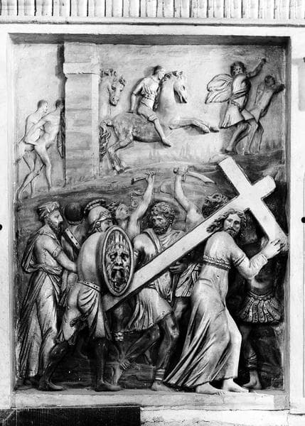 Ces hauts-reliefs représentent trois scènes de la Passion.