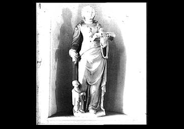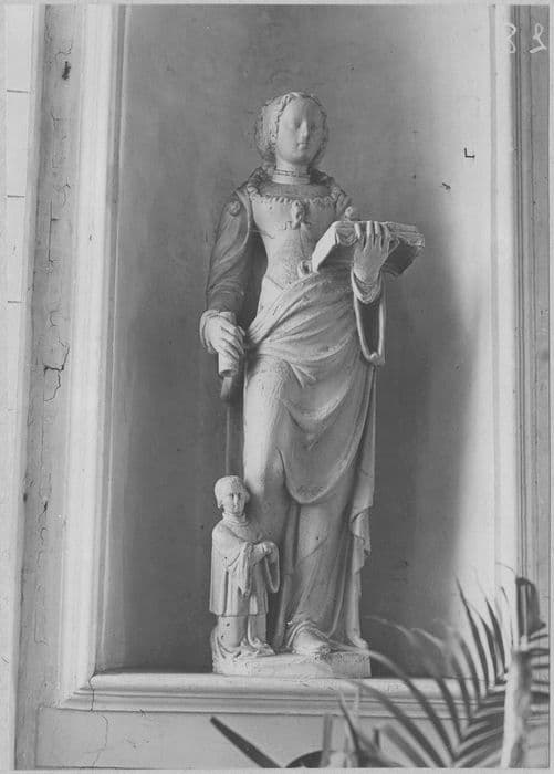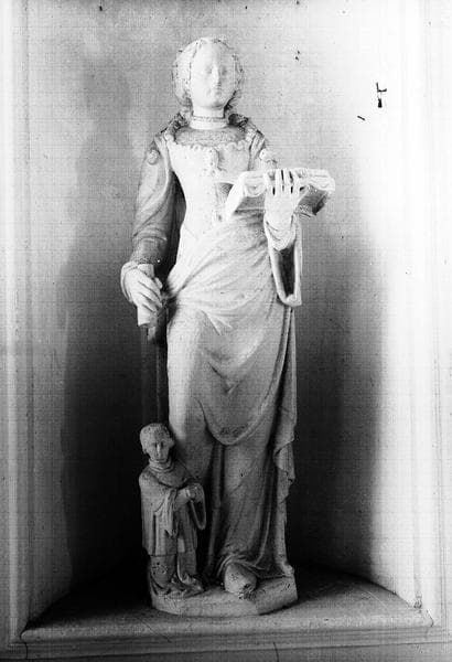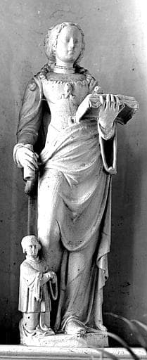 groupe sculpté : Sainte Marguerite (?) accompagnée d'un donateur ecclésiastique