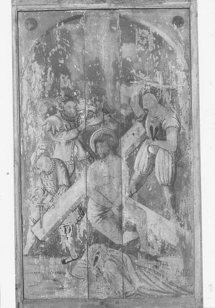 3 tableaux (panneaux peints) : Jésus cloué sur la Croix, la Flagellation, l'Ascension