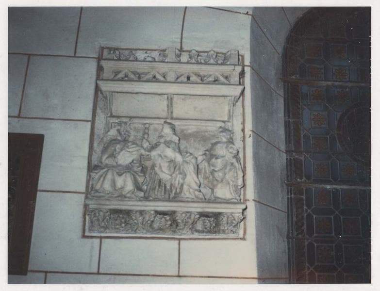 haut-relief : Priant présenté à la Vierge à l'Enfant par ses saints Patrons