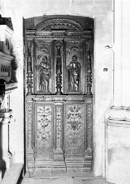 Ce vantail est orné de l'Annonciaiton en bas-relief.