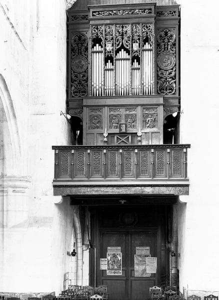 orgue de tribune : garde-corps de tribune (balustrade) ; buffet d'orgue