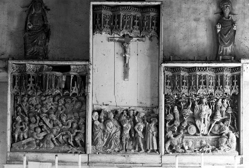 POP | Plateforme ouverte du patrimoineretable, bas-reliefs, cadre : Trois scènes de la Passion (œuvre volée)