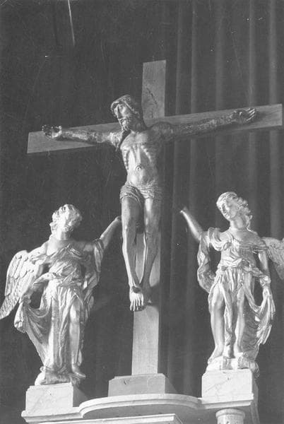 3 statues : Christ en croix entre deux anges adorateurs