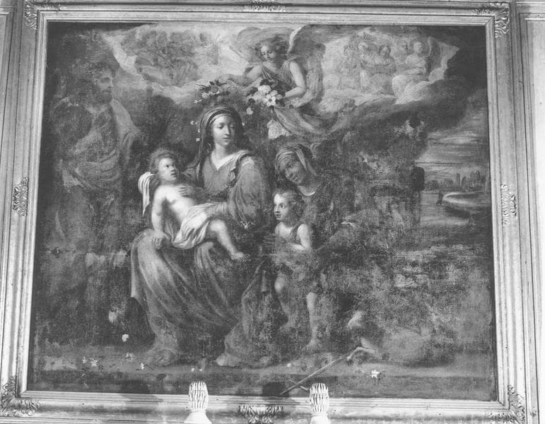 tableau et son cadre : Vierge à l'Enfant, sainte Elisabeth avec saint Jean-Baptiste enfant