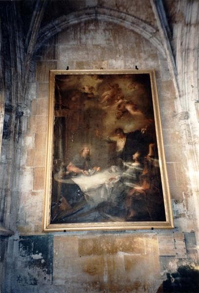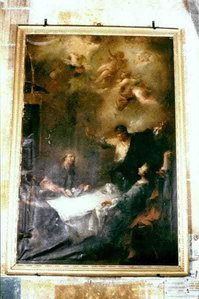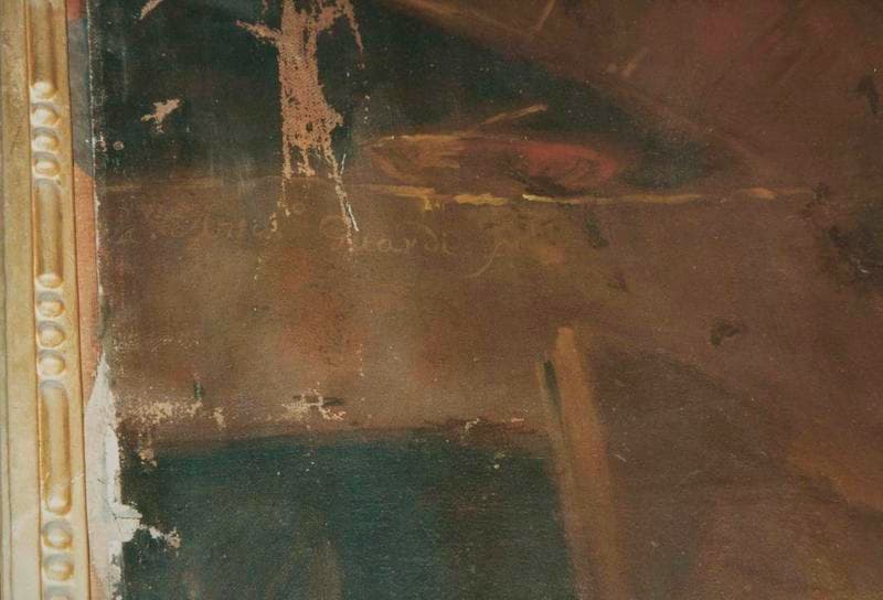 Ce tableau, aux grandes dimensions, est une huile sur toile dans un cadre en bois doré qui n'est sans doute pas d'origine.