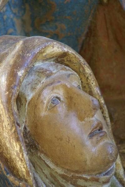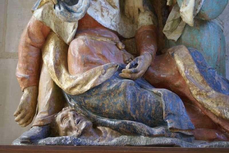 haut-relief : la Vierge et deux saintes femmes éplorées, élément du retable de la Descente de Croix