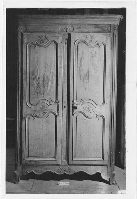 Armoire normande, sculptée de rameaux fleuris entre les panneaux moulurés, en partie supérieure et sur la ceinture inférieure.