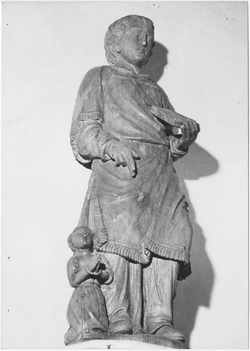 groupe sculpté : Saint Mathurin et l'impératrice Théodora