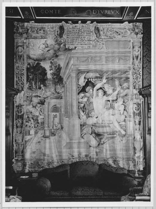 POP | Plateforme ouverte du patrimoinequatre pièces murales de l'Histoire de Diane : Jupiter changeant en grenouilles les habitants de lycée, La Mort de Méléagre, Diane tue Orion, Diane sauve Iphigénie, 456 à 459