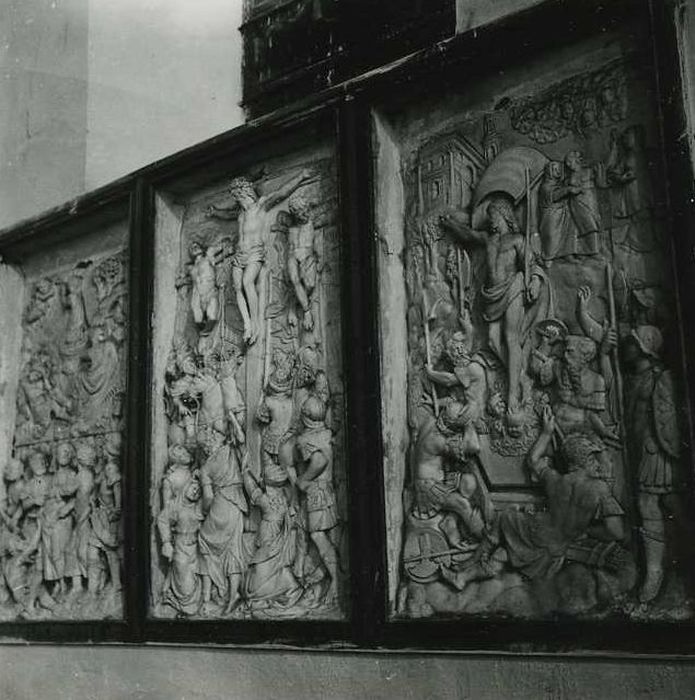 retable (retable à panneau compartimenté) : le Christ au Jardin des oliviers, le Baiser de Judas, la Crucifixion, la Résurrection du Christ