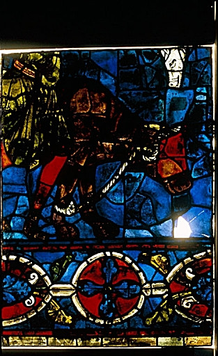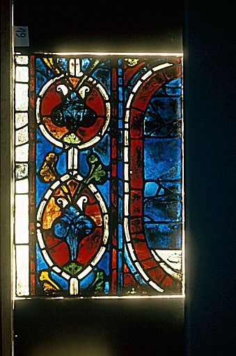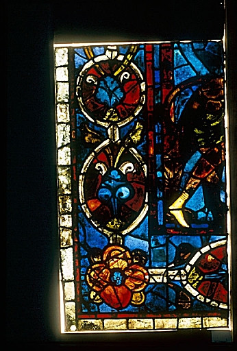 Verrières exécutées entre 1210 et 1225 données par les boulangers (baies 100 et 102), la famille Gaufridus (baie 101), les bouchers (baie 103), les changeurs (baies 104 et 106).