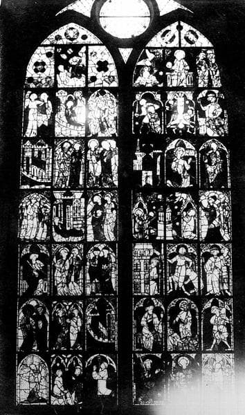 4 verrières figurées : histoire de saint Martin (l'), histoire de saint Vincent (l'), Vierge à l'Enfant, scènes de l'enfance du Christ, Christ couronné, donateurs (baies 109, 110, 113, 114)