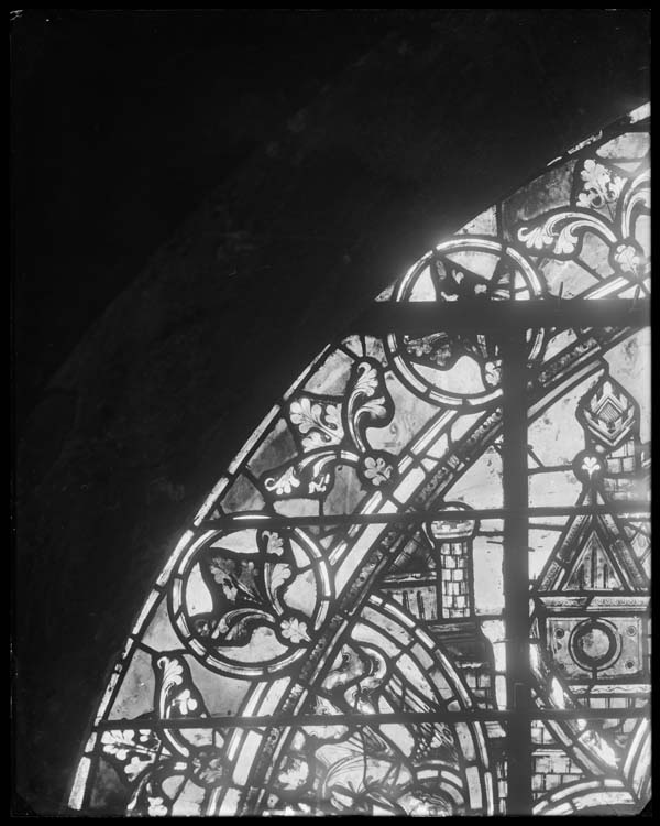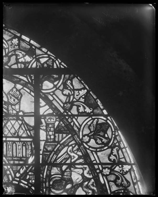 22 verrières figurées : l'histoire des apôtres, l'histoire des saints Simon et Jude, l'histoire de saint André, l'histoire de saint Paul, l'histoire de saint Jacques le Majeur, l'histoire de Charlemagne, l'histoire de saint Silvestre, l'histoire de saint Théodore, l'histoire de saint Vincent, l'histoire de saint Pantaléon, l'histoire de saint Remi, l'histoire de saint Etienne, l'histoire de saint Nicolas, l'histoire de saint Chéron, histoire de sainte Marguerite (l'), histoire de sainte Catherine (l'), histoire des saints Savinien et Potentien (l'), histoire de saint Thomas Becket (l'), histoire de saint Martin (l'), histoire de saint Julien l'Hospitalier (l'), histoire de saint Thomas (l'), zodiaque et travaux des mois (le), Notre-Dame de la belle verrière, scènes de la vie du Christ, histoire de saint Antoine ermite (l'), histoire de saint Paul ermite (baies 0, 1, 2, 4, 5, 7 à 9, 11 à 18, 20, 21, 23, 28 à 30)