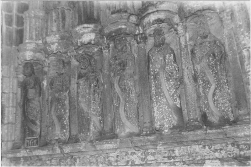 A l'intérieur du porche latéral, ces statues reposent sur un soubassement étalant des grotesques, hommes et femmes.