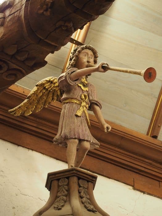 Les quatre panneaux de la cuve sont ornés des Evangélistes et des Docteurs d'Occident.
