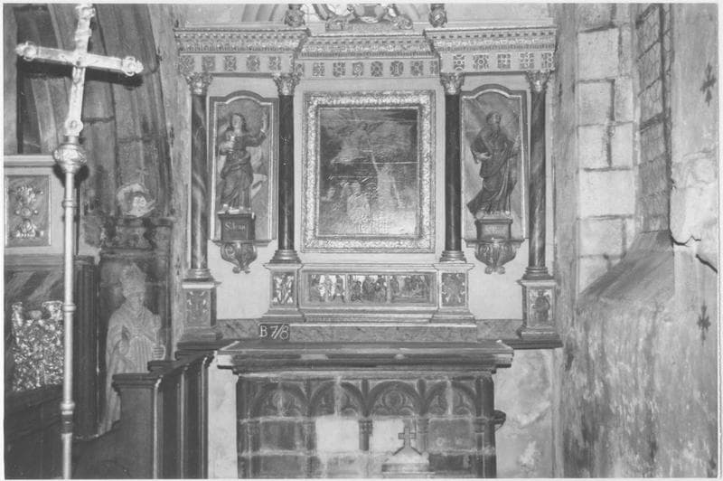 retable, 3 bas-reliefs : Saint Sébastien percé de flèches, Martyr tenaillé, Saint Jean dans la chaudière