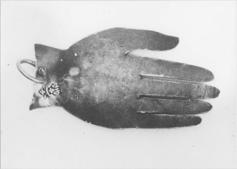 L'ex-voto se présente sous la forme d'un pendentif en forme de main d'enfant, avec un anneau pour suspendre l'objet.