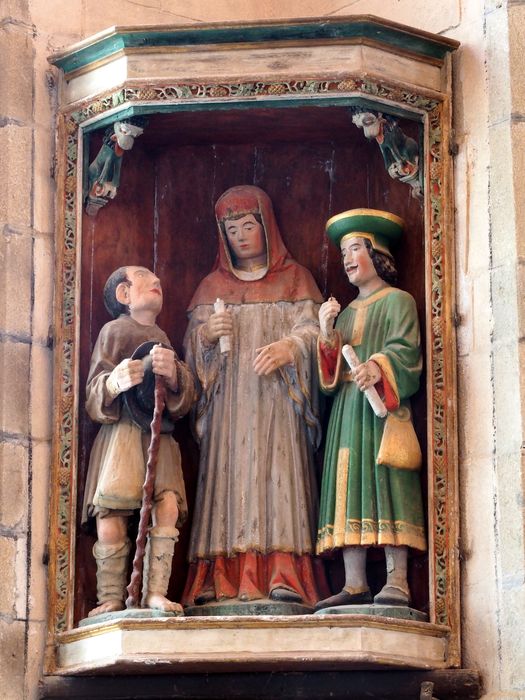 groupe sculpté : Saint Yves entre le pauvre et le riche