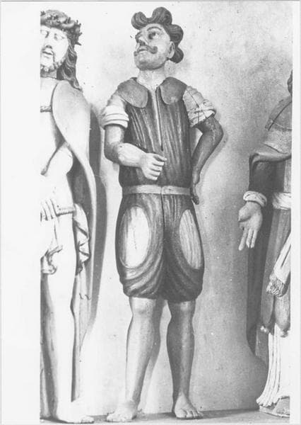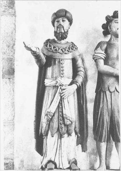 Groupe de 5 statues représentant le Christ, Ponce Pilate, Hérode et deux valets.