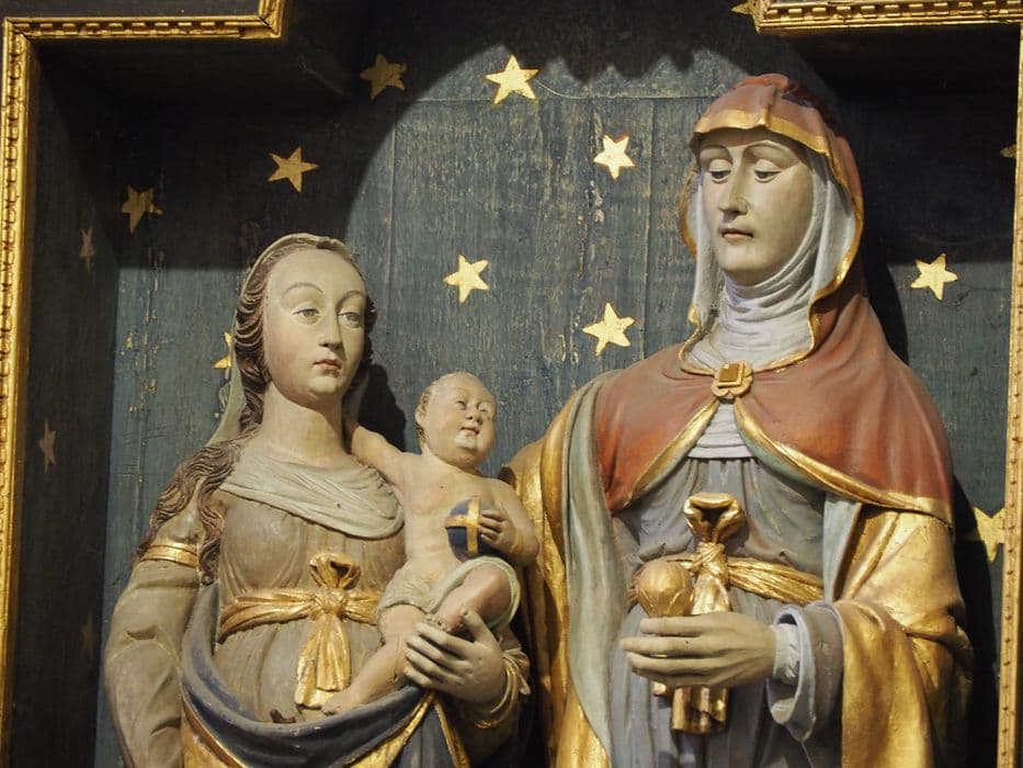 Vierge à l'Enfant ; sainte Anne ; saint Joachim ; saint Joseph ; sainte Barbe ; sainte Marguerite ; évêque