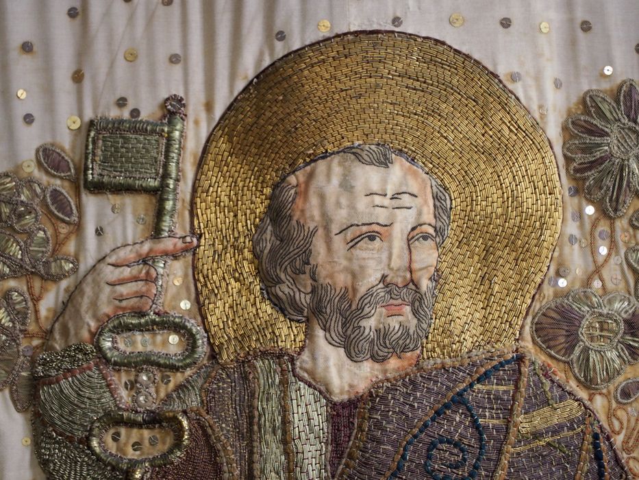 POP | Plateforme ouverte du patrimoinebannière de procession : Saint Pierre, Christ en croix entre la Vierge et saint Jean