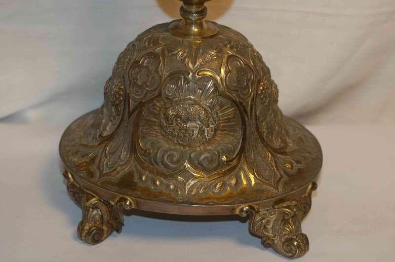 agneau mystique, rayons lumineux, nuée, Christ en croix, serpent : globe, blé, vigne, ornementation