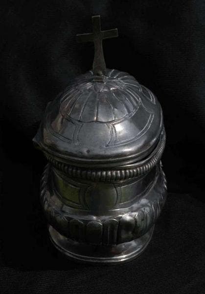 coffret aux saintes huiles ; ampoule à saint chrême ; ampoule à huile des catéchumènes