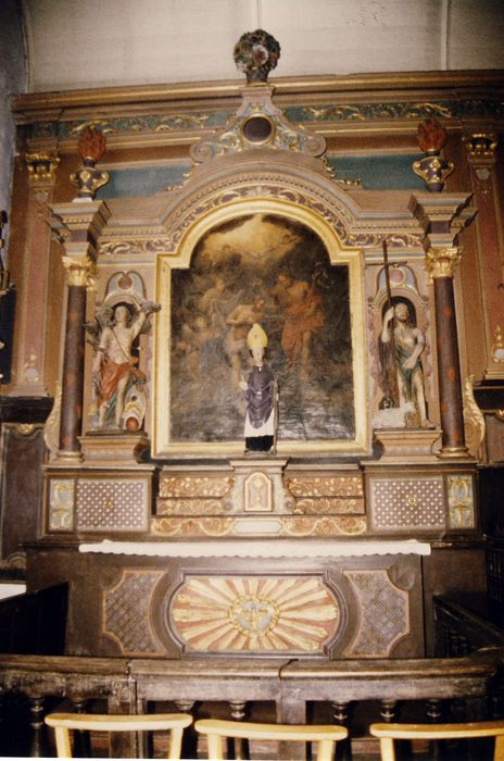 autel et retable latéral nord, avec statues de Saint Sébastien et de Saint Jean-Baptiste