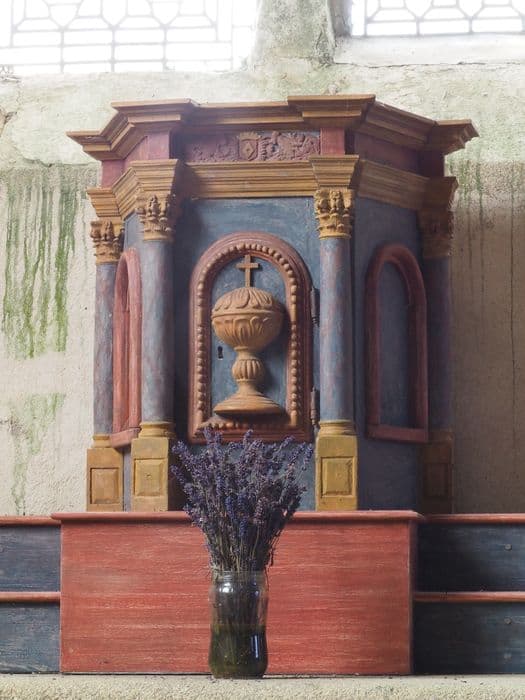 Dans le transept nord de la chapelle, sur l'autel en pierre.