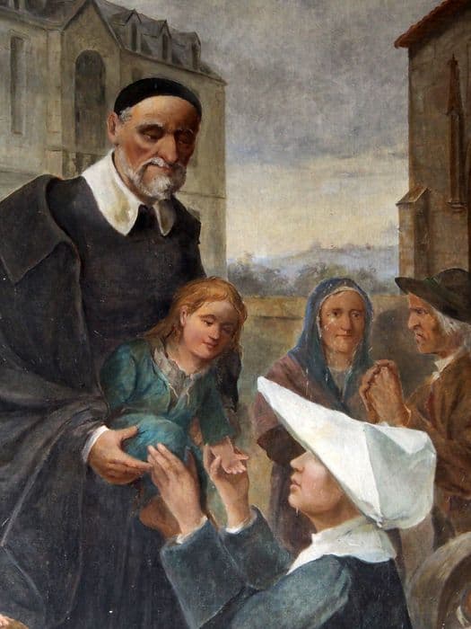 saint Vincent de Paul recueillant les enfants abandonnés ; soeur de la Charité