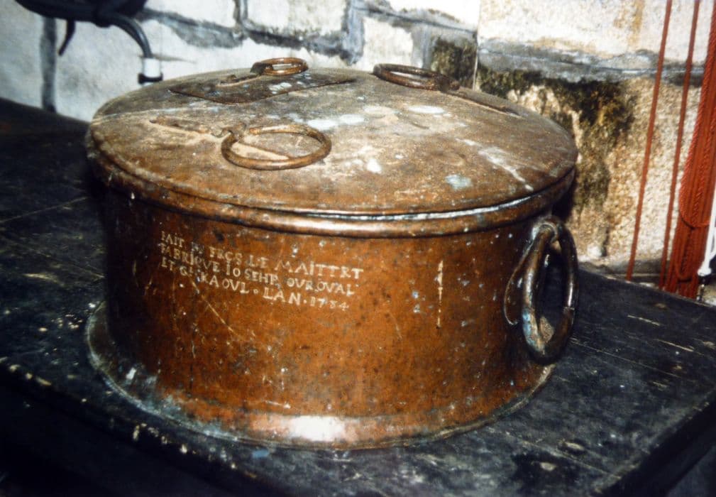 Matériau des fonts batismaux : kersanton. Cuve en plomb cuivré.