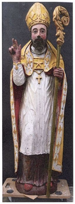 saint Magloire ; évêque ; en pied ; portant ; crosse ; bénédiction