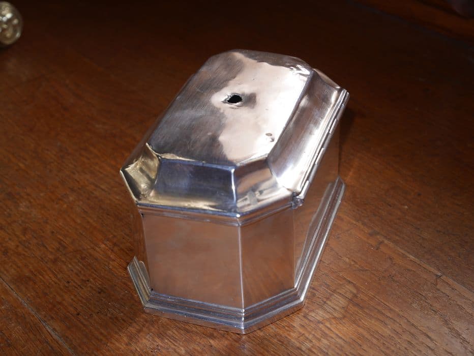 Coffret aux saintes huiles en argent.