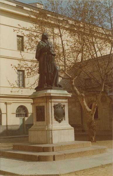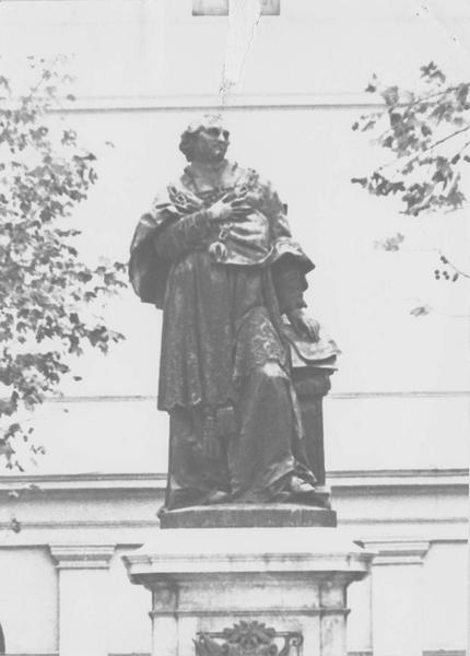 Statue du cardinal Fesch en bronze ; socle en marbre blanc, orné de quatre bas-relief en bronze