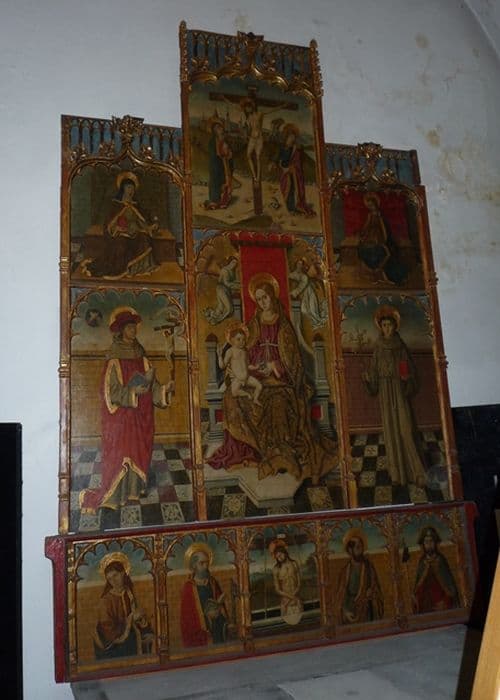 retable (triptyque) : Christ en croix entre la Vierge saint Jean et sainte Madeleine, de la Vierge à l'Enfant